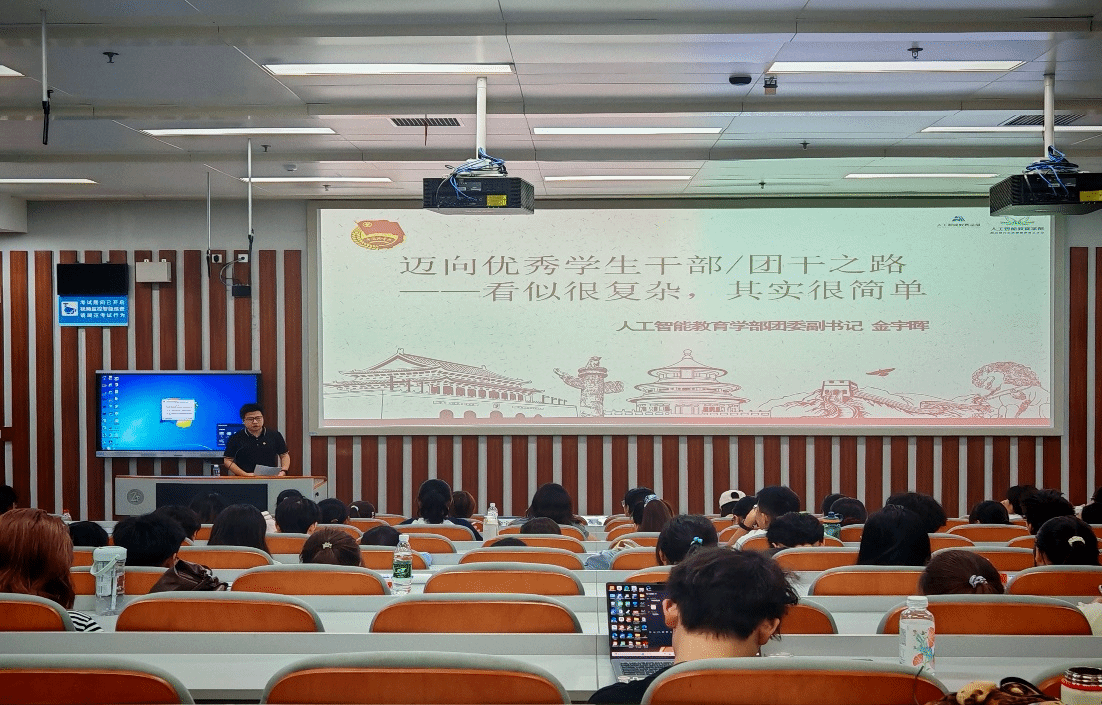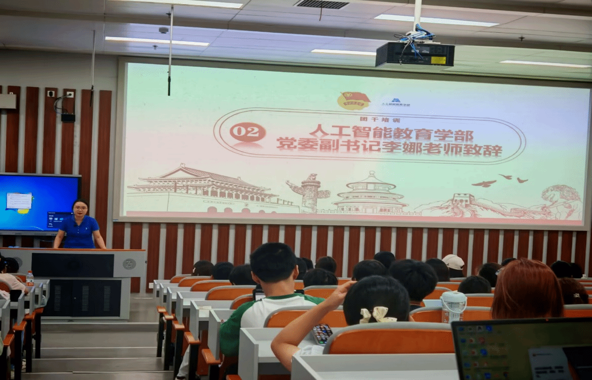 | 人工智能教育学部讯(通讯员 王蓝婷)为进一步贯彻落实学校组织育人方针,加强学部学生思想政治教育,锤炼团员青年综合素质,2025年10月11日下午,华中师范大学人工智能教育学部“从‘新’出发,向‘智’而行”团干培训开班典礼在南湖综合楼N207教室隆重举行。人工智能教育学部党委副书记李娜、团委书记任嘉航、团委副书记金宇晖出席典礼,第六届团委学生会全体成员、2025级年级干部、各班班长及团支书参加此次培训。开班典礼由组织部负责人陈子莹主持。