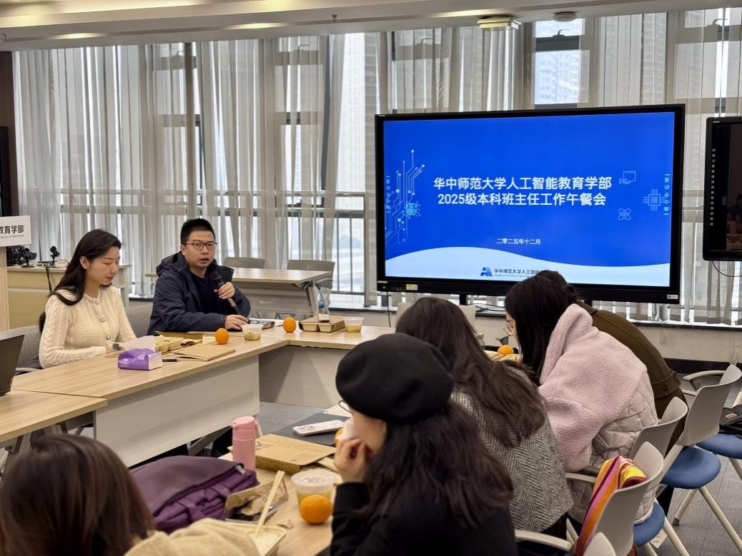 人工智能教育学部讯(通讯员 郭星怡)为提升2025级本科班级管理工作质效,促进班主任之间的沟通交流,12月10日中午12:00,华中师范大学人工智能教育学部2025级本科班主任工作午餐会在南湖综合楼N7001顺利召开。人工智能教育学部党委副书记李娜、2025级本科生辅导员金宇晖、兼职辅导员刘博文及2025级全体本科班主任参加本次会议。