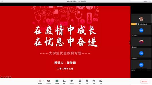 (通讯员 王乐璇)3月29日下午,教育大数据应用技术国家工程实验室全体本科生在辅导员任梦璐的组织下通过腾讯会议APP进行第三期主题教育课程。本次以忧患教育为主题,课程旨在结合当下疫情增强当代大学生的忧患意识,同时勉励同学们在忧患中成长奋进。