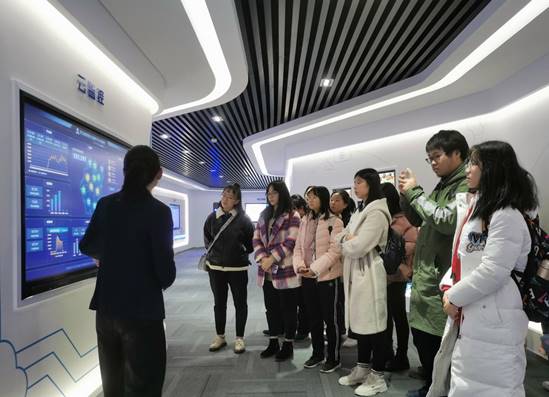 最后一站是天喻信息的展厅,讲解员介绍了该公司的基本情况、主要研究方向以及该公司在慧教云平台、智慧校园等方面的研究成果。同学们还在讲解员的带领下体验了智慧教室,尝试了新型的教学及课堂互动手段。期间,大家积极提问,了解智慧教室具体的操作方法及公司制度、公司实习等方面的问题。