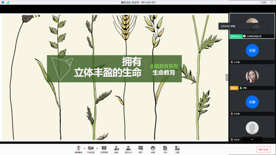 (通讯员 王乐璇)4月12日下午,在本科生辅导员任梦璐的组织下,教育大数据应用技术国家工程实验室全体本科生通过腾讯会议APP进行第四期生命教育专题课程。本次主题教育旨在引导学生认识生命的本质,并学会珍惜生命,提高生命的质量,延长生命的长度;丰富生命,享受生命的精彩,拓宽生命的广度;把握生命,活出生命的价值,提升生命的高度,从而拥有立体丰盈的人生。