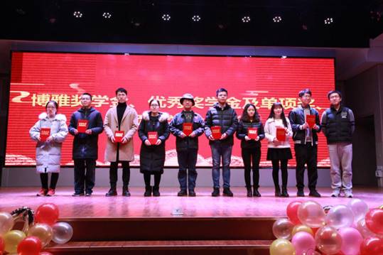 表彰环节,由黎俊玲老师为国家奖学金、国家励志奖学金获奖代表,李刁老师为获得博雅奖学金、优秀奖学金及单项奖、专项奖获得代表,詹一虹老师为获得荣誉称号的学生代表,吴绍靖老师为学科竞赛获奖代表分别颁发荣誉证书。