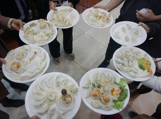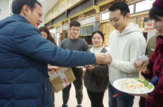 本次包饺子活动,研究生会生活部和志愿者们早早的准备好了饺子皮和多种馅料等待大家的到来。在活动中,老师和同学们都非常的开心,纷纷亲自上手包起了饺子,一些不会的同学也在一旁认真学习着老师们包饺子的方法,不仅相互合作完成饺子的制作,与此同时,互聊家常,你来我往,氛围其乐融融。