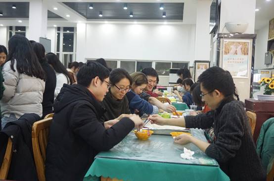 (通讯员 王秋平 摄影 郑欣欣)为了加强导学关系建设,增进亲切浓厚的师生情谊,进一步弘扬民俗文化,继承传统习俗,12月21日18:30,工程中心在桂香园二楼举办了“冬至饺子香,师生情意浓”喜迎冬至活动,工程中心正处职组织员盘华、党委副书记黄涛、何彬、李睿等老师和中心本研105余名同学参加了此次活动。