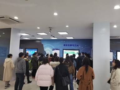 进入展厅后,由工程中心自主研发的StarC教学平台、“星未来”特教系统、虚拟仿真学习资源等一系列产品吸引了大家的注意力,讲解员也依次介绍了这一系列的数字化教学资源与工具、教学监测管理系统、教育信息化评估系统。同学们表现出极大的兴趣,在了解和操作了各种数字化教学工具系统的过程中,也不断发出掌声和赞叹:“原来还可以这样上课。智慧教室,引领未来教育!”