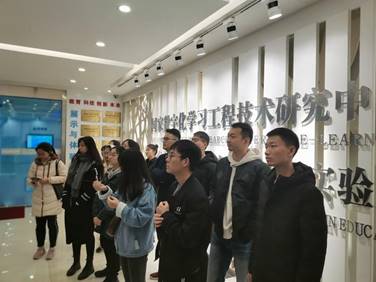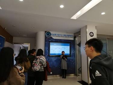首先,讲解员张鑫宇向同学们介绍了工程中心15年的发展历程和21世纪人才培养支撑体系。技术向教育领域的扩散,已是不可避免的趋势;技术与教育的融合,已从第一阶段中技术的媒体观发展至第二阶段中技术的认知价值观,如今已发展至现阶段所提倡的技术与教育深度融合的阶段,即技术的生态观。教育信息化的目的在于优化学习者的学习过程,工程中心也一直走在国内教育信息化发展的前端。工程中心未来教室展厅已逐渐成为我校对外宣传智慧教育成果的窗口之一。