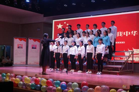 合唱环节师生们倾情献唱了十首歌曲,他们分别是由工程中心18级研究生演唱的《歌唱祖国》,由工程中心19级研究生演唱的《大中国》,由文产中心一队演唱的《保卫黄河》,由文产中心二队演唱的《爱我中华》,由伍伦贡一队演唱的《中国军魂》,由大数据18级本科生演唱的《新的天地》,由伍伦贡二队演唱的《打靶归来》,由大数据19级本科生演唱的《国家》,由教工合唱队演唱的《我和我的祖国》,以及由特邀嘉宾青年歌唱家陈小艺演唱的《洪湖水浪打浪》。