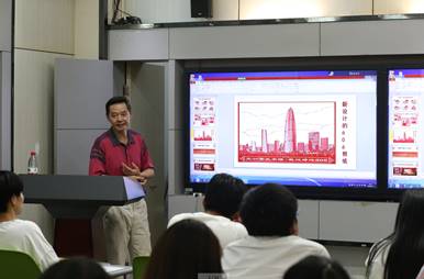 沈老师首先结合自己的教学经验、实践经验和出访经历,从剪纸的起源、表现形式、艺术流派等方面做了全面而详细的讲解。接着,沈老师还现场操刀,为师生们演示了人物肖像、花卉、小动物等的剪法,他为每一种剪纸自创了四句口诀,当师生们念完四句口诀时,唯妙唯俏的剪纸作品已经出现在了他的手中。沈老师还在演示中与学生互动,将自己的作品送给学生,让学生们深切感受到剪纸的魅力。在活动中,同学们听得聚精会神,老师们也赞叹不已,看到沈老师所展示的剪纸作品,全场沸腾,欢呼不已,教室中的气氛达到高潮。“光说不练假把式”,沈老在活动最后,将自己带来的剪纸分发给大家进行剪纸练习,全场沈老师没有停歇过,来回对师生们进行手把手教学。