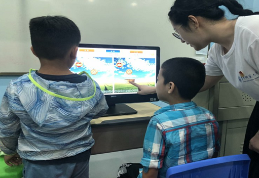 课间休息时间,小朋友们在队员的帮助和辅导下,体验星未来平台上的小游戏,很多小朋友对星未来平台表现出极大的兴趣,尤其喜爱拼图游戏和数字游戏,游戏提高了儿童的注意力和语言表达能力,这正是他们所欠缺的。同时,星未来也吸引着家长的加入,队员们也会同家长和老师讲解星未来平台的设计理念以及它带给孩子的帮助。