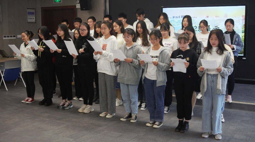 首先是由1902班班长何荣清介绍本班情况,图文并茂地展现了1902班同学在团日活动、志愿活动等方面的情况,接着1902班同学合唱《你曾是少年》,感情真挚,打动了在场的观众。