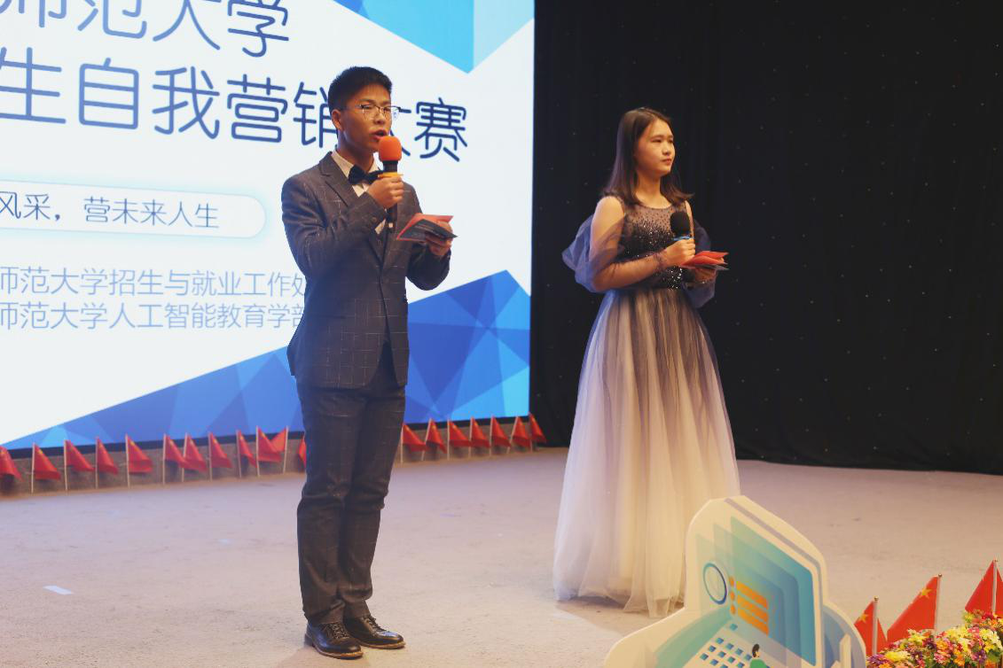 人工智能教育学部讯(记者 徐清妍 冯歆媛)12月18日晚,由招生与就业工作处主办、人工智能教育学部承办的华中师范大学第五届大学生自我营销大赛决赛在华中师范大学九号楼演播厅举行。湖北省高校毕业生就业指导服务中心创新创业部部长蔡晨磊,方正璞华首席人力资源官、人力资源高级管理师潘华萍,华中师范大学中科创业学院负责人丁玉斌,华中师范大学生涯发展教育与就业指导中心讲师、GCDF全球生涯规划师、生涯咨询师张凡,华中师范大学人工智能教育学部人力资源管理办公室主任、伍伦贡联合研究院副院长吴和林担任本次大赛的评委。人工智能教育学部党委书记罗丽华、党委副书记黄涛以及方正璞华招聘经理万菖出席决赛现场。