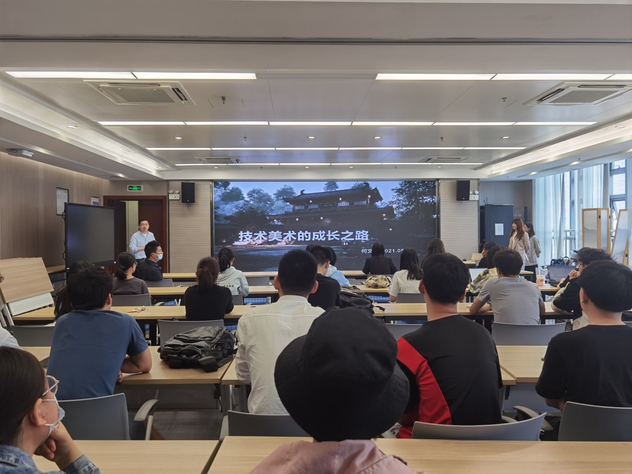 在讲解期间,何文雅作为资深行业从业者,不仅向同学们展示了技术美术工作需要的技能技巧,譬如要掌握最基本的文案整理功底,行业的核心竞争力在于能否把前沿知识应用到游戏里等。更关键的,也为同学们指明了技术美术学习和实践的相关方向,建议同学们在校期间要多参赛,多接触实践自己感兴趣的方向,丰富自己的简历。