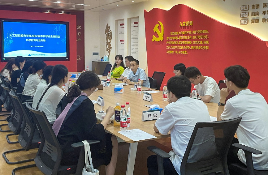 人工智能教育学部讯(记者刘玥罗亚欣)为充分了解2022届科学教育本科毕业生的学习工作情况,进一步做好2022届毕业生就业工作,为毕业生提供针对性的就业服务,解决就业难题,人工智能教育学部于6月15日中午在南湖综合楼1161会议室召开2022届科学教育本科毕业生专场座谈会。人工智能教育学部党委副书记陈晓宇担任主持人。人工智能教育学部教育信息技术学院副院长童名文,科学教育与传播系副教授庞世燕,18级班主任龙陶陶,18级辅导员文乐胜及9位科学教育本科毕业生代表出席会议。