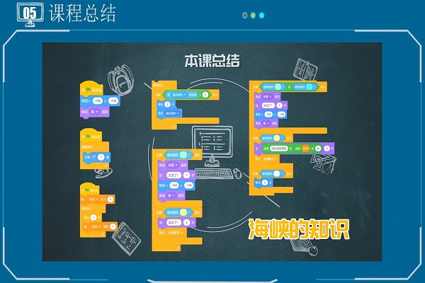 对于小学生而言,游戏的魅力不可估量。为提高学生的积极性和主动性,6月26日,实践队成员借助“Mind+”软件设计“海峡竞速”小游戏,利用程序帮助快艇通过海峡,成功到达河岸。成员们将该程序分为水阀的旋转移动、快艇的鼠标控制移动、成功与失败效果显示和快艇的加速效果四个部分进行讲解,在讲解的过程中,时常与学生互动,及时了解学生学习情况,并调整教学进度。讲解内容结束后,学生自主动手进行小游戏的开发,运用已学知识,让快艇抵达彼岸。
