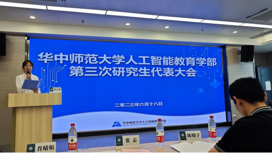 (通讯员:蒙莉 李爽)2023年6月18日上午,华中师范大学人工智能教育学部第三次研究生代表大会在南湖综合楼7001会议室召开。人工智能教育学部党委书记黄涛、党委副书记陈晓宇、团委书记汪双、研究生辅导员王潘、张志、肖婧娟、校研会主席团代表汪鹏宇以及66名研究生代表出席本次会议。本次大会由人工智能教育学部第三届研究生会文艺部部长赵鑫主持。