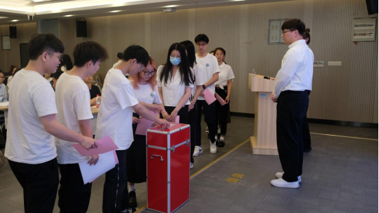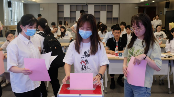 由大会总监票人党委副书记陈晓宇宣读选举结果,最终何静、杨雅婷、林俊三名研究生入选为学部第四届研究生会主席团成员。