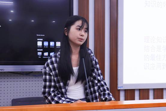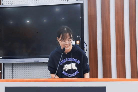 来自教育技术学(非师范)专业的徐书楠首先进行了经验分享。她从专业学习、学科竞赛、生活社交、自我探索等方面向新生分享了自己大一期间的学习与生活经历。徐书楠重点强调了良性社交对于大学生活的重要性,号召学部学子在努力学习的同时也要关注身心健康,欣赏沿途风景。
