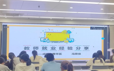 第五位分享者张丹玲结合自己的实践经历,从招聘信息获取、教学学段的选择以及如何准备招聘三方面进行了介绍。现场的同学们都积极地参与提问与互动。