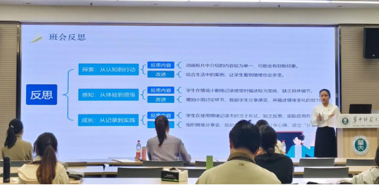 评委老师对选手们的表现进行了总体点评。她们充分肯定了选手们在比赛中的努力和付出,赞扬了学部师范生们展现出的良好精神风貌,同时也指出了他们在班会课活动设计方面存在的不足之处,给予了相应的改进建议。此外,她们也鼓励选手们继续保持对教育的热情和敬业精神,不断提升自己的专业素养和教学能力,为未来的教育事业贡献自己的力量。