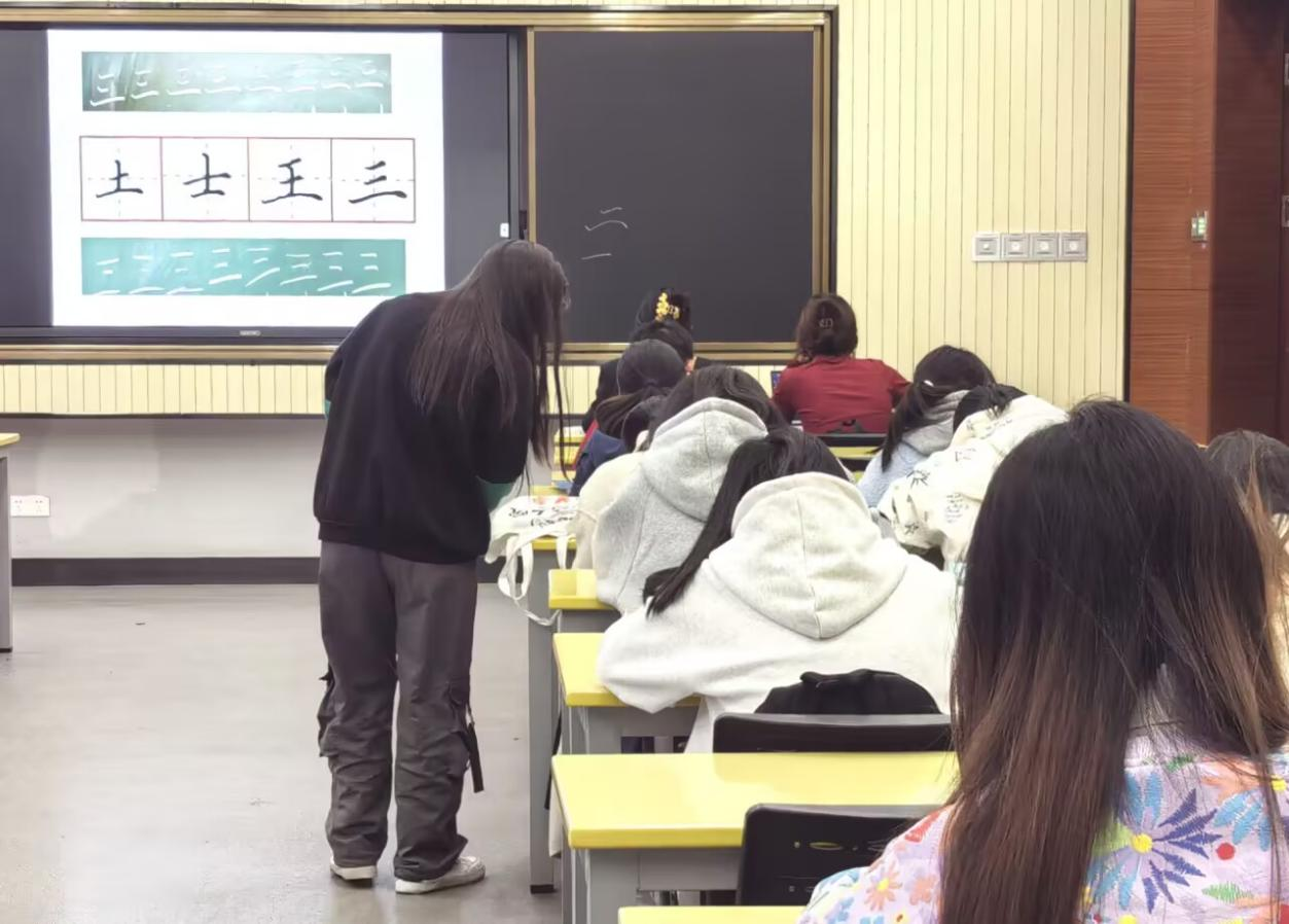在课堂练习环节,同学们全神贯注,认真临摹练习。期间,章文静针对同学们在书写过程中出现的问题,给予耐心且细致的指导与建议。通过专业的讲解与实践练习,同学们在基本笔画书写上取得了显著进步。这不仅提升了同学们的个人书写素养,更为他们在教育教学岗位上能够更好地进行书写示范、传承书法文化奠定了坚实基础。