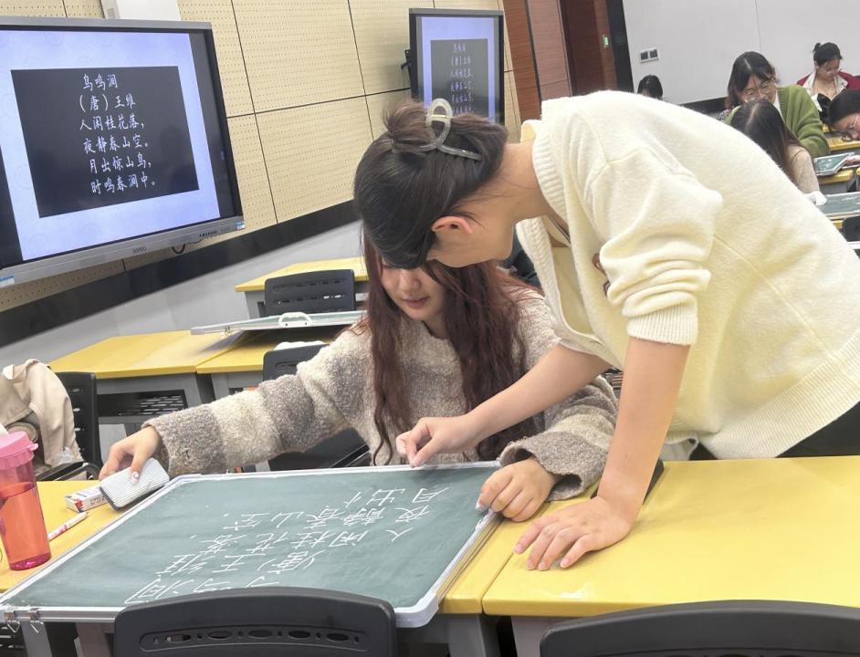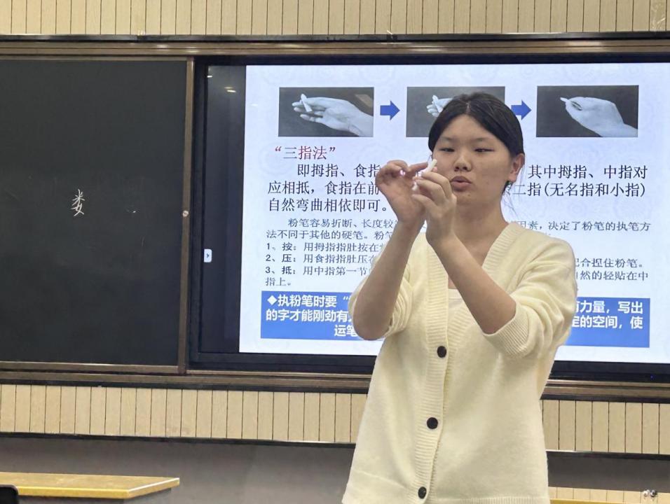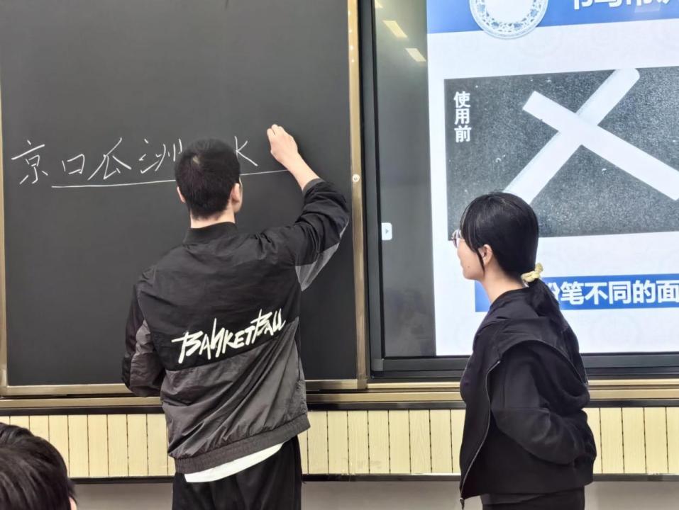 人工智能教育学部讯(通讯员 田海蓉)为了提升师范生的粉笔字书写能力,培养未来教师的专业技能,10月26日晚,人工智能教育学部2024-2025学年第一次粉笔字培训在南湖综合楼N108开展。本次活动邀请到书写技能指导团成员王竟文、宋梦琪分别作为学部粉笔字1班和2班的主讲人,培训由人工智能教育学部团委学生会学术科研部举办。