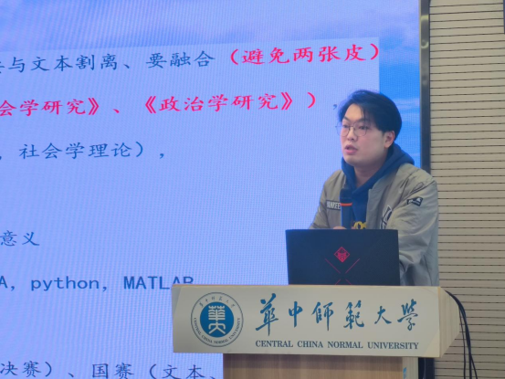 冯相龙带领大家浏览了往年“大挑”的获奖作品,并在选题方面给予了中肯的建议。他指出,选题要紧跟时代潮流和专业领域前沿,同时落实到具体、可操作的层面,避免泛泛而谈。他还分享了自己在往届竞赛中的经验,详细讲解了比赛过程中需要注意的问题,使在场同学对“大挑”有了更加清晰的认识。