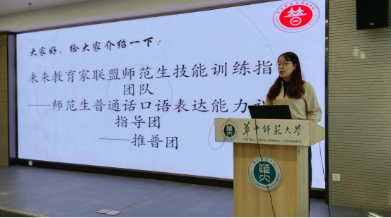 活动伊始,韩婷简要介绍了推普团的成员构成和使命,强调了普通话作为教师职业语言的重要性。随后,韩婷带领学员们进行了五节口部操的练习,通过简单的口腔运动和发音练习,帮助学员们打开口腔,为后续的普通话训练打下坚实的基础。