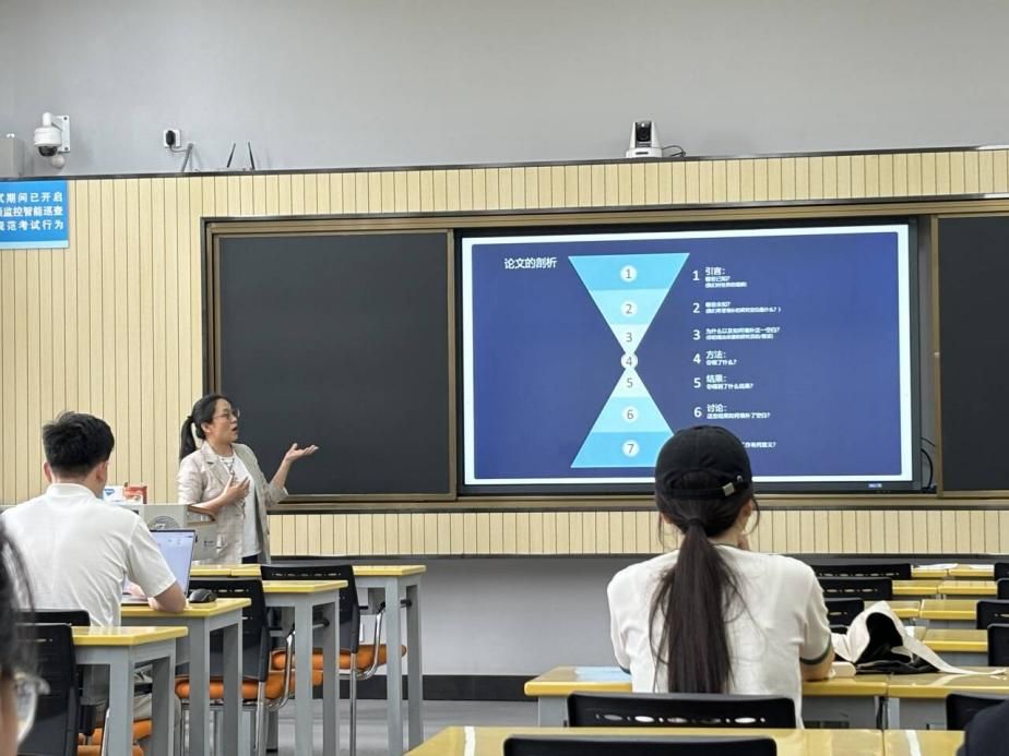 活动伊始,主持人热情洋溢地介绍了杨玉芹教授的学术背景与成就,并宣布分享会正式开始。杨教授以“如何写英文SSCI文章”为主题,从论文写作的整体结构比喻入手,将论文比作一座知识大厦,引言是地基、方法是结构框架、结果是建成实物、讨论是功能评估与优化、结论是总结与延展建议,形象地阐释了各部分的重要作用与相互关系。随后,杨教授详细讲解了论文各部分的写作要点,包括标题的吸引性与准确性、摘要的结构四要素、引言的背景介绍与研究问题提出、文献综述的系统整理与批判性分析、方法部分的可复制性与逻辑清晰性、结果部分的数据清晰呈现、讨论部分的理论与实践意义探讨以及结论部分的总结升华等。她还分享了写作技巧加分项,如使用短句与主动语态、段落开头聚焦主题句、使用连接词增强逻辑等,并结合自身丰富的写作经验,为同学们提供了诸多实用的写作建议与技巧。