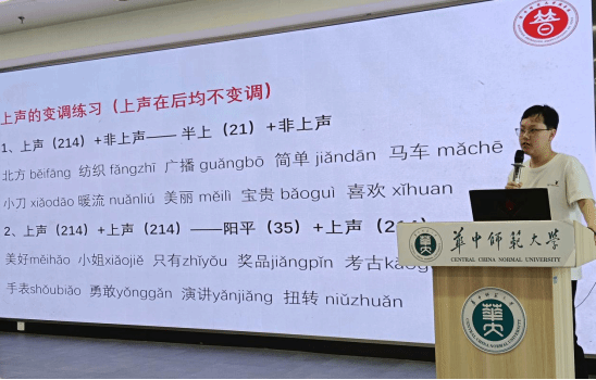 为强化学习效果,培训现场还设置了丰富的互动环节。主讲人邀请多位同学试读普通话测试文章,针对发音错误、语调偏差等问题进行一一指导。