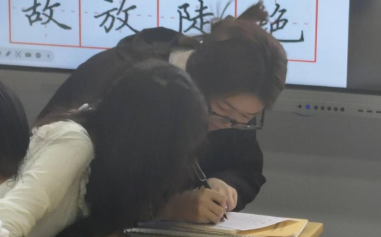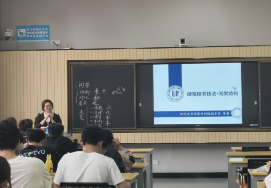 在培训过程中,主讲人主要从汉字间架结构的基本原理入手,列举大量典型汉字,剖析笔画组合规律、部件比例关系,讲解了不同字体结构的特点与书写要点,让师范生们对间架结构有了系统且清晰的认知。实践指导环节,主讲人对师范生书写过程中暴露出的重心不稳、比例失调等问题,给予指导与演示。