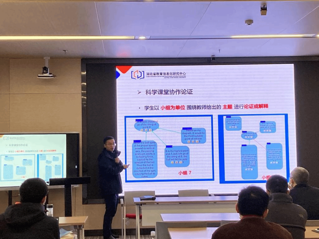 活动第一项由张思老师进行主题分享,主题为“计算机支持的协作学习及其评估”。他首先介绍了新加坡南洋理工大学学习科学研究的基本情况,紧接着对博士后研究工作的展开进行简单介绍,着重介绍了项目“科学课堂协作论证的评估与可视化”。之后他介绍了CSCL研究主题,主要包括教学法模型、协作学习支持工具和学习分析三个方面,详细介绍了协作学习平台1.0、2.0、3.0的功能及相关改进,并介绍了协作学习模型、研究方法论等内容。最后,他重点介绍了协作学习平台的第三代平台——AppleTree,并以华师工作经历为基础提出三个具备可行性的意见,分别是在Stahl提出的小组认知模型的基础上进行改进,为小组协作学习提供支架,依托QQ和UMU构建协作学习平台,应用ICAP框架开展协作学习分析。