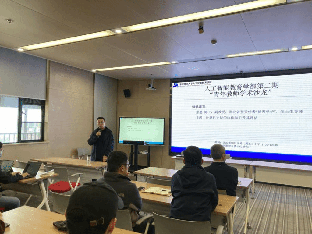人工智能教育学部讯(见习记者 严瑞)为进一步推进青年人才队伍建设,为广大青年教师搭建长期、广阔的学术交流平台,着力推动学部内不同学科青年教师之间的学术交流。2020年10月16日上午,人工智能教育学部2020第二期“青年教师学术沙龙活动”在南湖综合楼1160报告厅顺利举办。出席本次活动的嘉宾是人工智能教育学部副教授张思,学部青年教师及部分研究生参加活动。