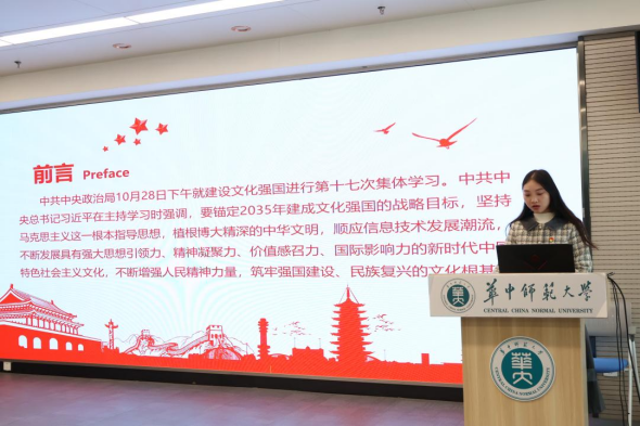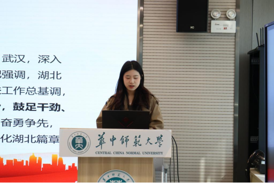 首先,由党员同志王小艺对习近平总书记在湖北考察时的重要讲话精神进行了领学。她强调广大师生党员要深入学习贯彻习近平总书记的重要讲话精神,牢记嘱托,发挥自身优势,提振干事创业精气神,在奋力推进中国式现代化的宏伟篇章中作出新的华师贡献。