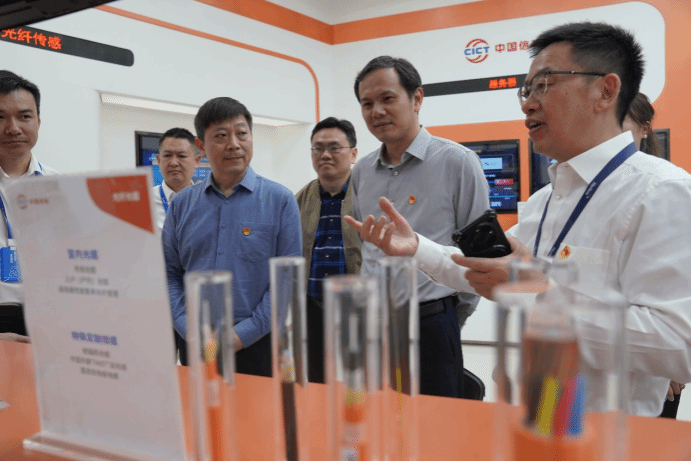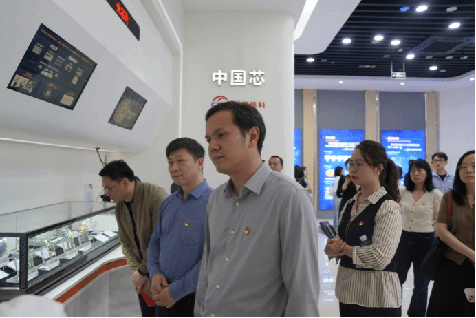 在烽火通信数字化展厅,党员们沿着企业发展脉络,通过数字化展陈方式,系统回溯了企业从“一根光纤”到“中国光通信产业旗舰”的奋斗历程。驻足于习近平总书记考察时的影像资料前,党员们深刻体悟“核心技术自主可控”的战略深意。在“中国芯”创新展区,技术人员现场演示了自主研发的光电子芯片及通信模组,详细解读突破“卡脖子”技术的攻关历程,生动诠释了新时代科技工作者的创新担当。