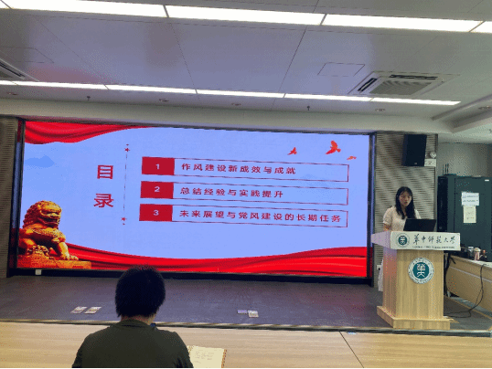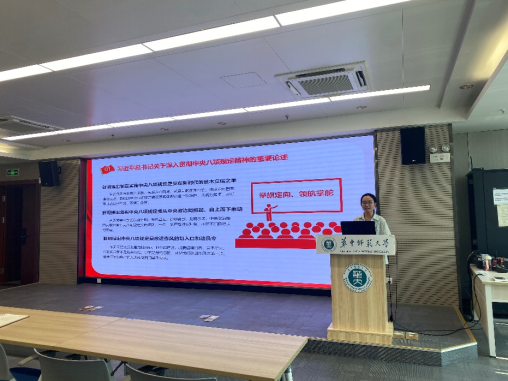 最后,本科生党支部书记王瑞讲授了题为《扎实开展深入贯彻中央八项规定精神学习教育》的主题党课,并作本次党日活动的总结讲话。她强调,全体党员要深刻领会中央八项规定精神的内涵,将理论学习转化为行动自觉,在日常学习、工作和生活中发挥先锋模范作用;毕业生党员更要牢记师长的嘱托,在新的岗位上坚守教育初心,以清正廉洁的作风展现华师人的精神风貌。