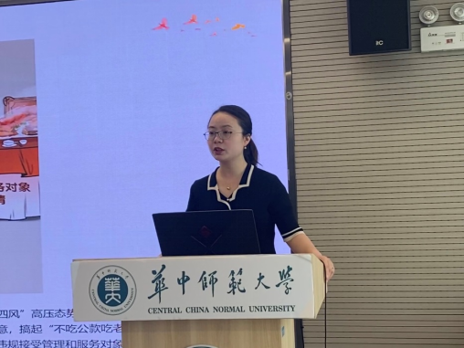 在“学生党员领学主题教育”环节,农翠芹以“深入贯彻中央八项规定精神重要论述、有力有序贯彻执行中央八项规定精神”为题展开领学,系统总结了十年来党中央推进作风建设的历史性成就,特别是通过数据分析展示了教育系统在整治“四风”问题、规范办学行为等方面取得的显著成效。茹琦琦则围绕“深入贯彻中央八项规定精神的成效与经验”进行分享,她通过梳理党的十八大以来习近平总书记关于作风建设的重要论述,结合教育领域典型案例,深入阐释了中央八项规定精神的时代价值和实践要求。