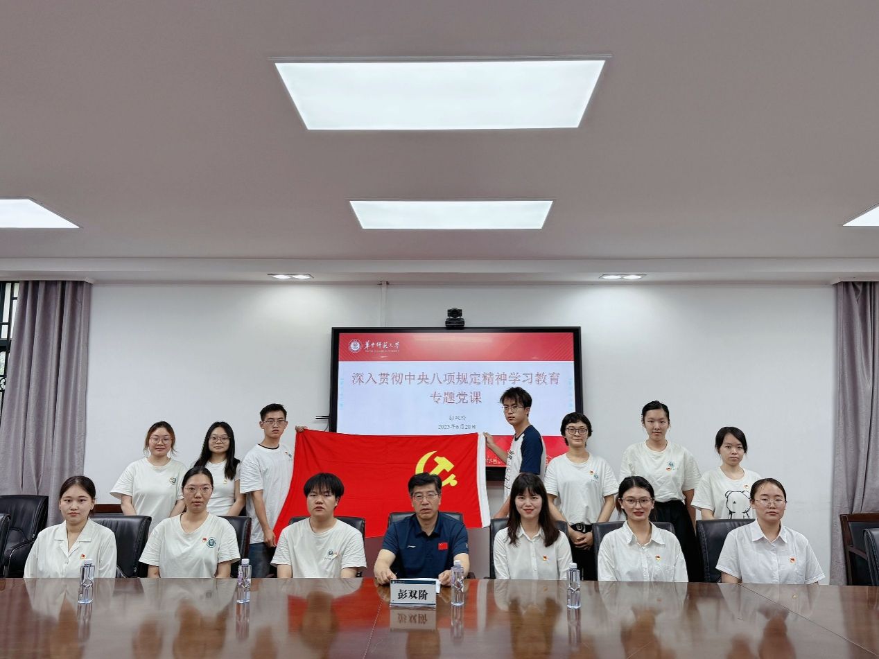 (通讯员 王潘 任德博)6月20日下午,校长、党委副书记彭双阶于行政楼附楼201会议室讲授深入贯彻中央八项规定精神学习教育专题党课暨联系支部党课,人工智能教育学部教育技术学硕士第一党支部13名成员及学校审计处全体老师参与本次活动。