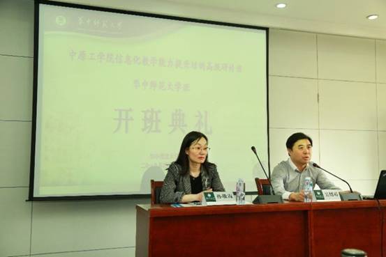 2019年4月20日至4月24日,中原工学院信息化教学能力提升培训高级研修班在华中师范大学成功举办。4月20日下午,本次研修班开班仪式在华中师范大学科学会堂201举行,中原工学院教师发展中心主任、人事处副处长孙敬霞,华中师范大学国家数字化学习工程技术研究中心副主任吴绍靖出席了开班仪式。