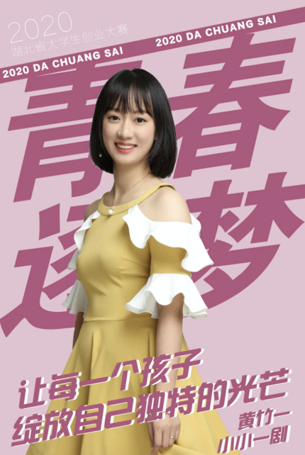 黄竹一所创立的公司主要从事精品儿童戏剧开发与演出,致力于为更多家庭带来高品质的亲子陪伴。她是小小一剧品牌联合的创始人,2019年与先生徐达以及拥有多年剧场、亲子剧目运营经验的合伙人郭小琳共同创立“小小一剧”,希望能让武汉的孩子们观赏全球一流的亲子剧目,接受世界先进的教育理念。目前,黄竹一入选“创业湖北”2020年湖北省大学生创业电视大赛10强。