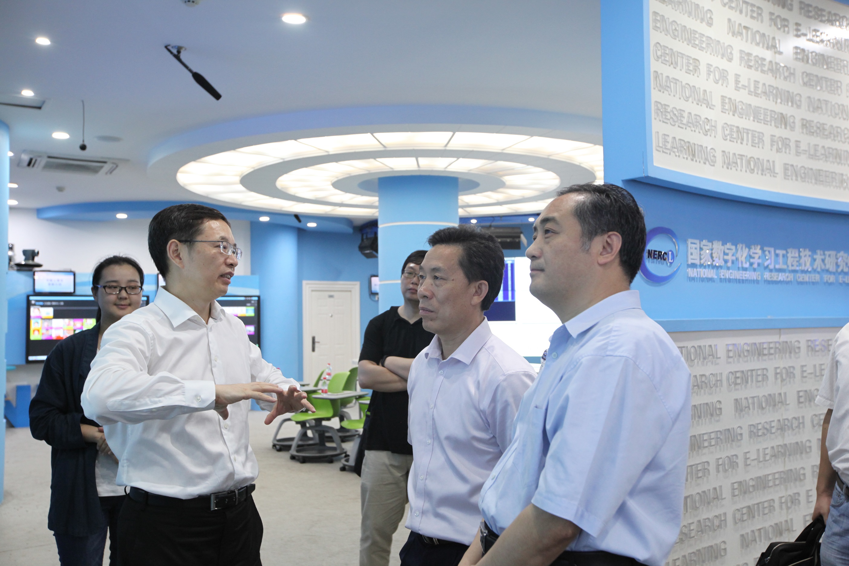 Guo Yuejin visited the exhibition and the experience center, and the future classroom, and they had a detailed understanding of series of scientific products in NERCEL and its application in practical teaching, and at last, they thought highly of the breakthrough in education information technology and achievements of products research.